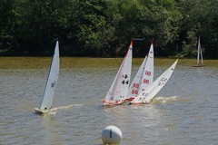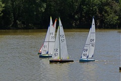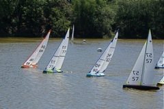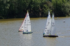 57, on port tack, is trying to cross the bows of the fleet;