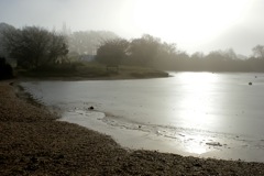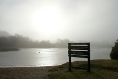 Morning fog around the pond